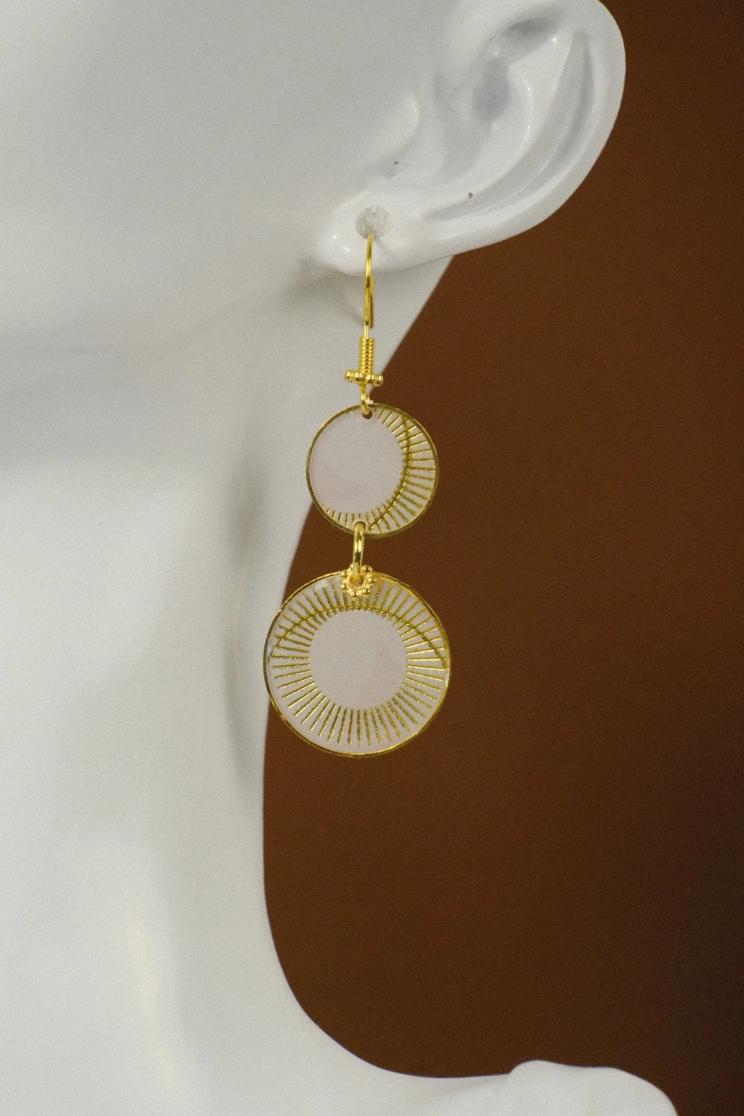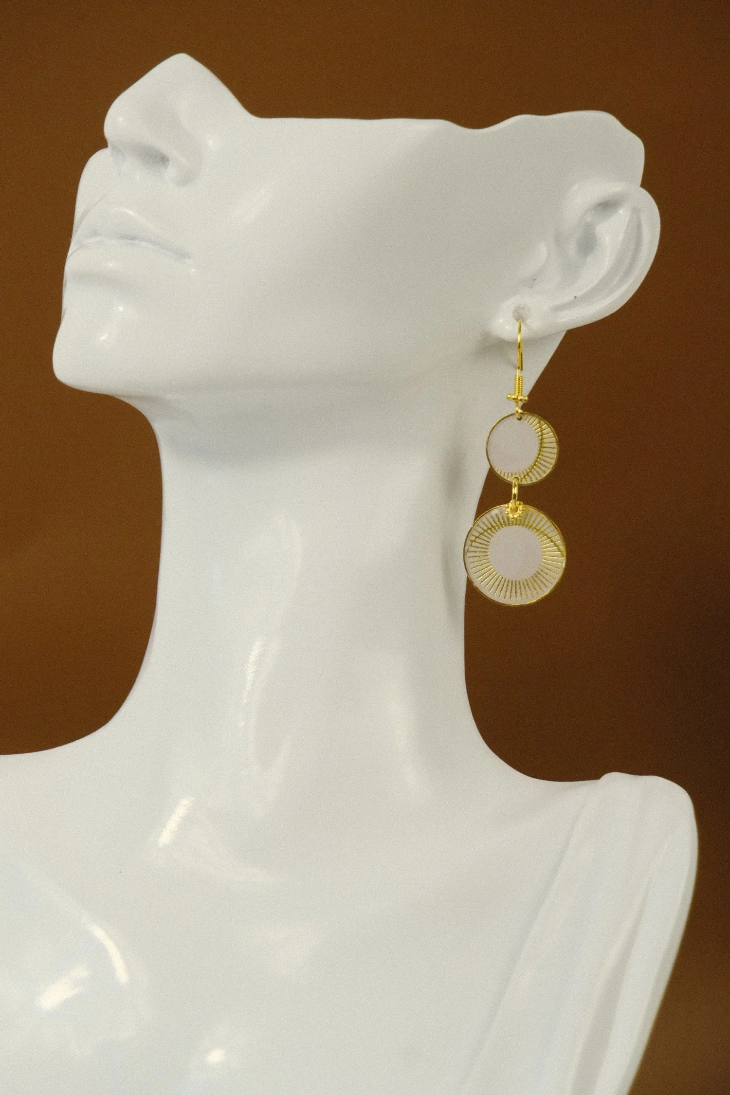 Double Golden Teardrop Fuchsia Resin Handmade Earrings