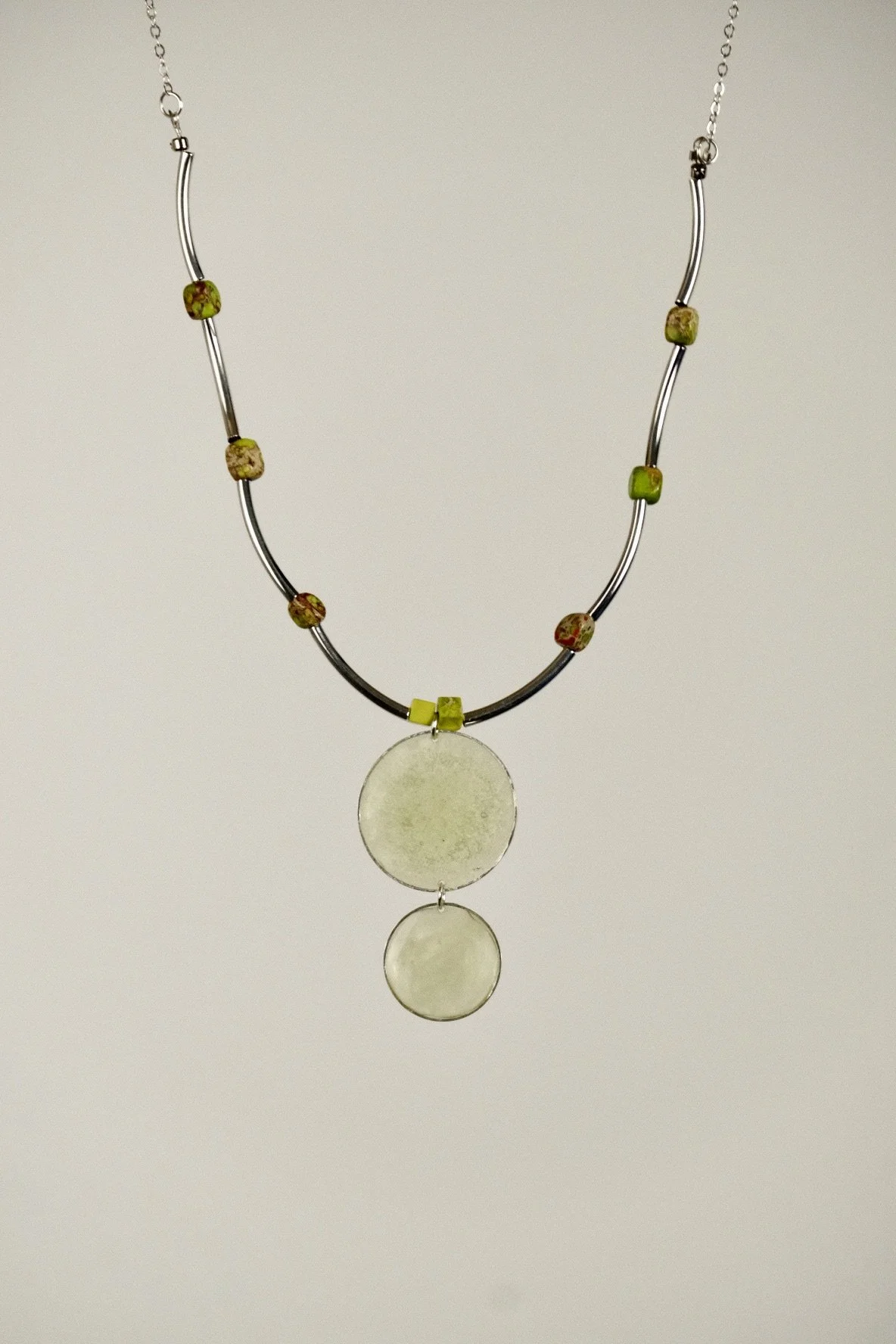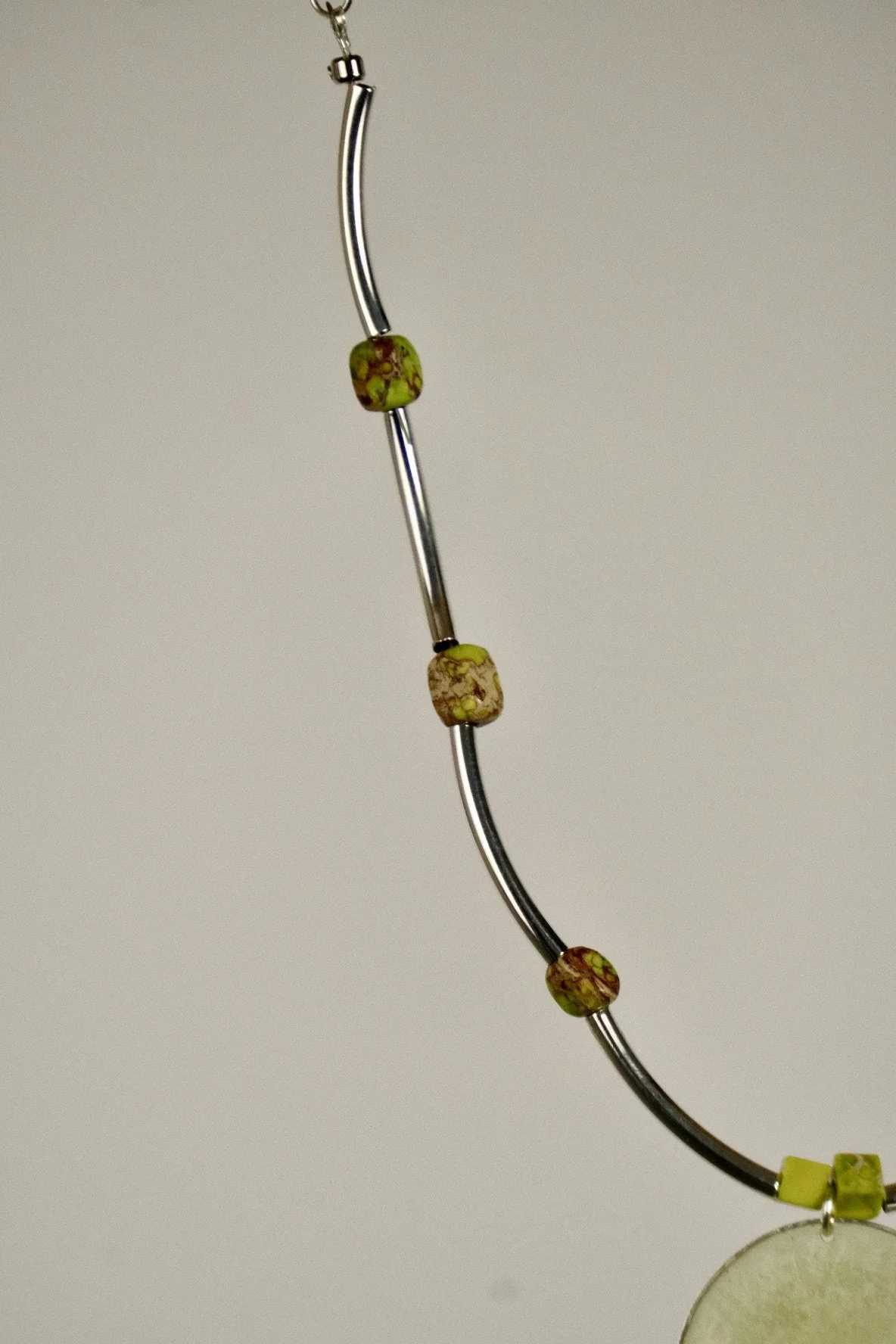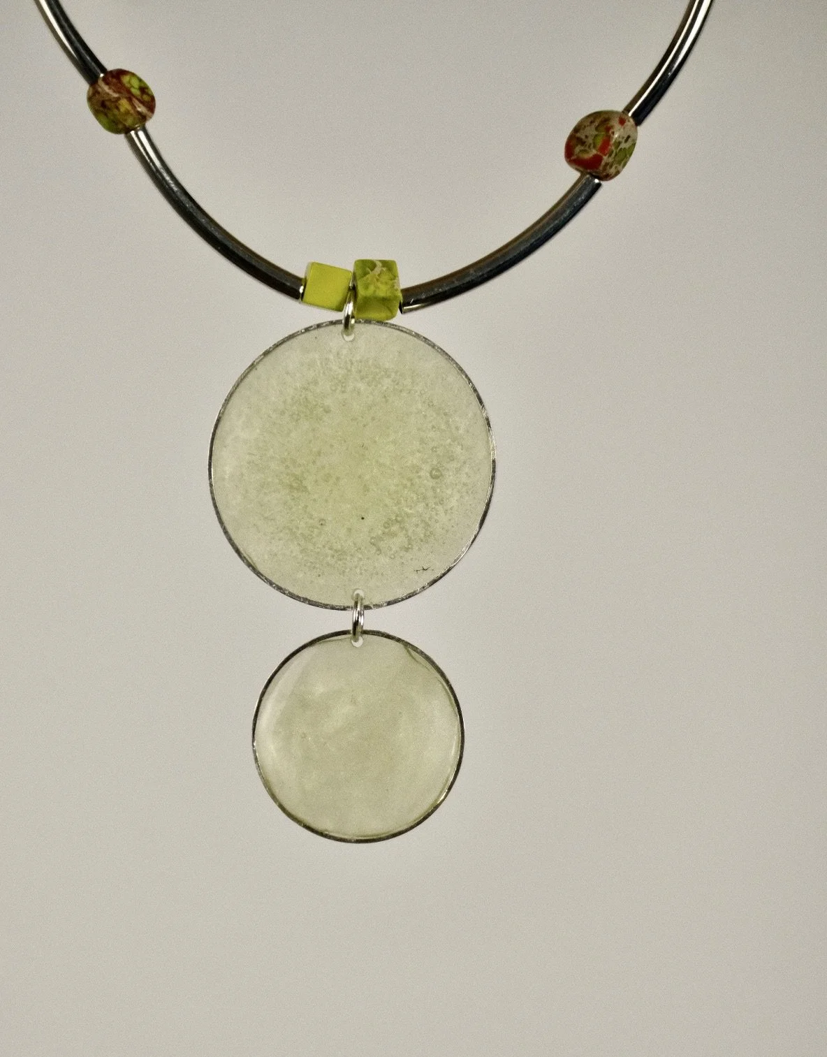 hypoallergenic silver plated chain. silver coated copper bezel, resin, pigment